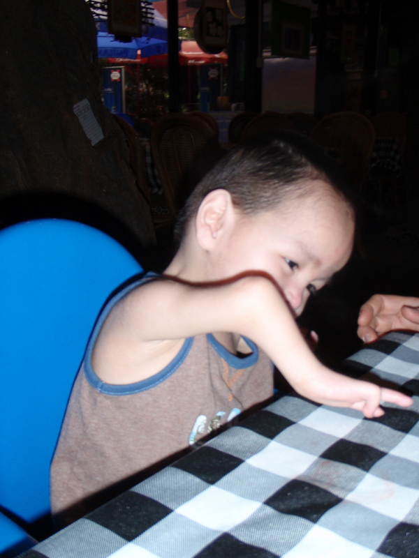 first meal as an american citizen!! and he's eating off the table like the rest of us do! hahahaha!!